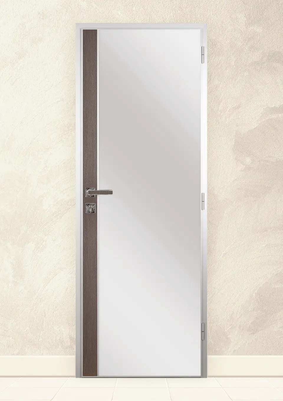 Нова серия алуминиеви врати за баня, чиято външна страна се предлага във всички цветове на Граде. От страната на мокрото помещение имат голямо огледало и малка вертикална част от страната на бравата в цвета на крилото. Има възможност тази част да бъде с алуминиева лайсна – което е препоръчително за помещения, в които вратата ще бъде подложена на обливане с вода.