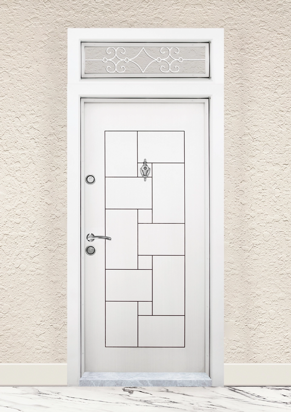 Моделът се предлага и без фрезовка на панела. Също така, при поръчковите врати има възможност касата и металът на крилото да се боядисат в цвят по системата на RAL.
