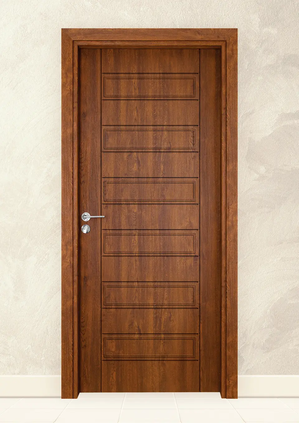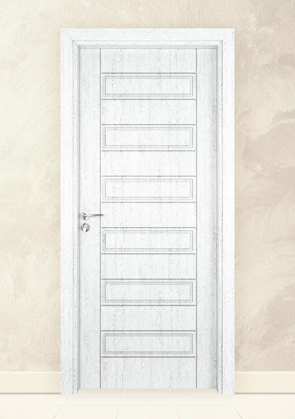 * Включва крило, каса за зид от 70 до 130мм, плаващи первази за двете страни, иноксова дръжка тип розетка, секретна брава, патрон с 3 ключа, насрещник, три лагерни панти, гумено уплътнение.