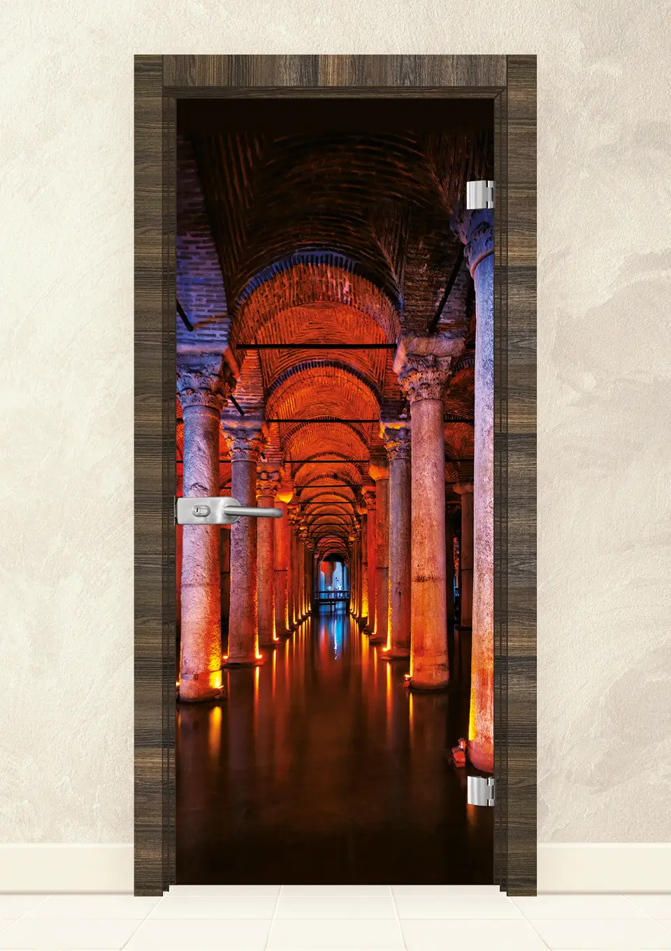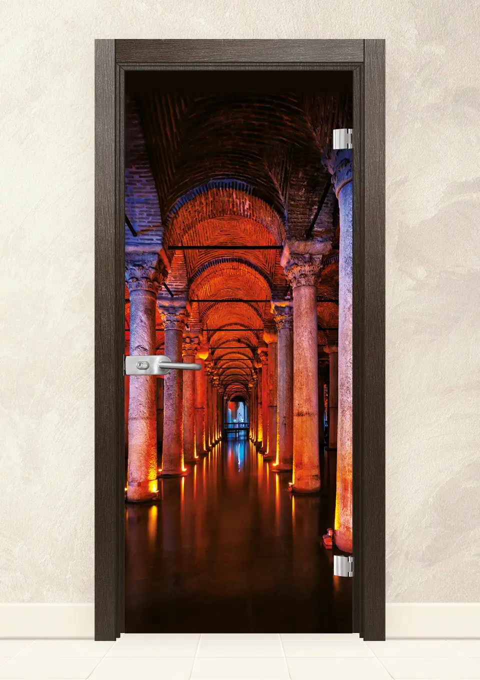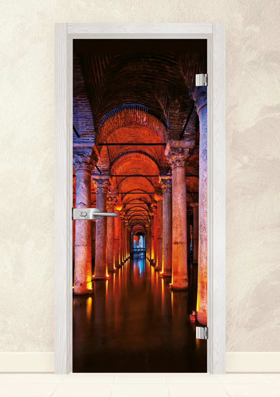 Стъклена врата, изработена от 8мм закалено стъкло с принт. Закаляването е процес, при който стъклото е подложено на специална обработка, осигуряваща му повишена здравина при удар и резки спадове на температурите. При счупване, то се пръска на малки парченца без остри ръбове. При серия Print се слепват две 4 мм стъкла, чрез специален термичен процес, като между тях се поставя фолио с принт. Принтът може да бъде едностранен или двустранен.