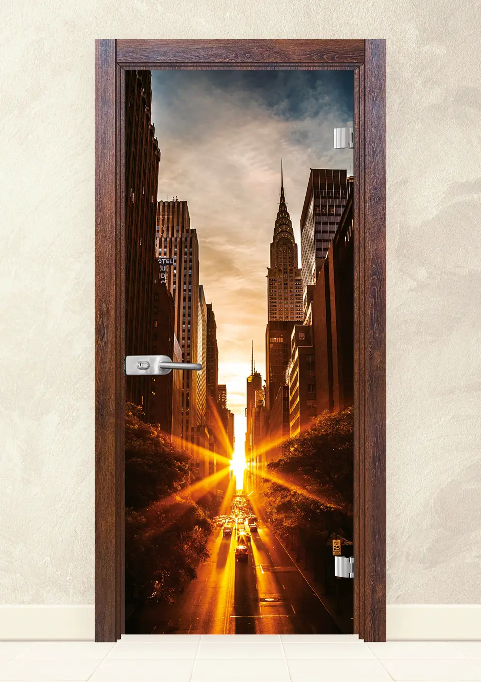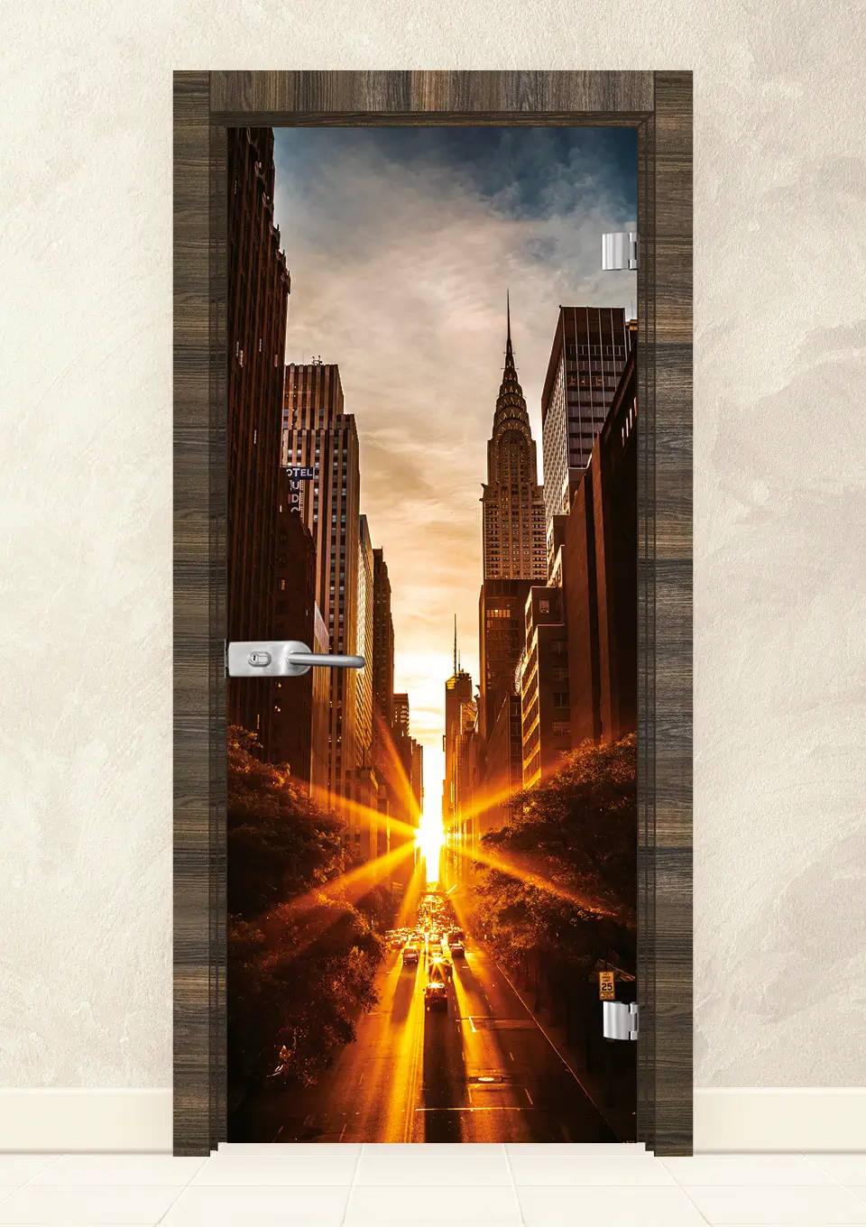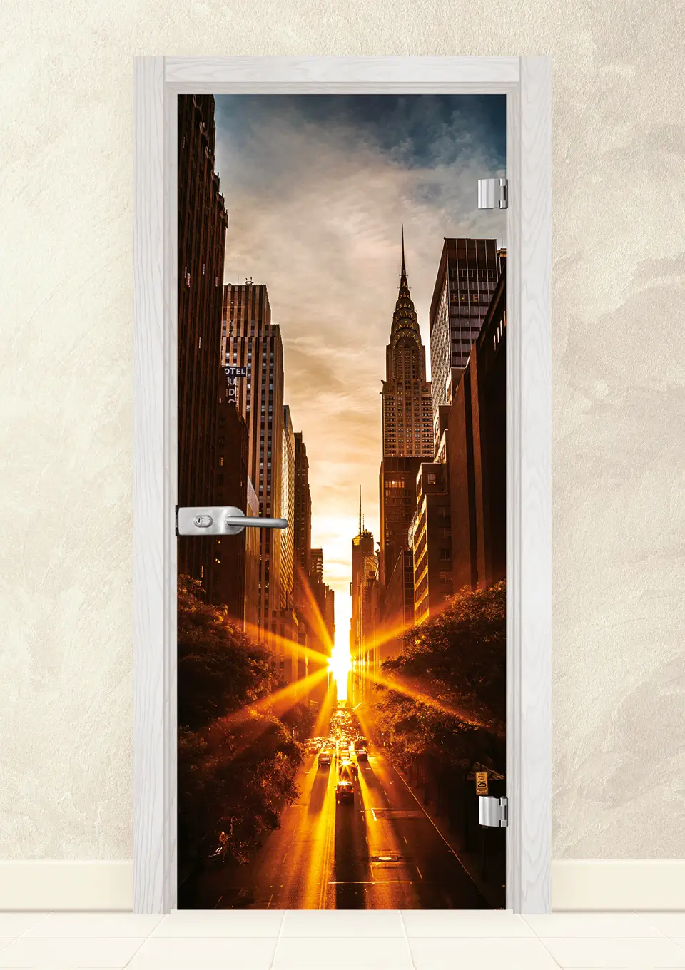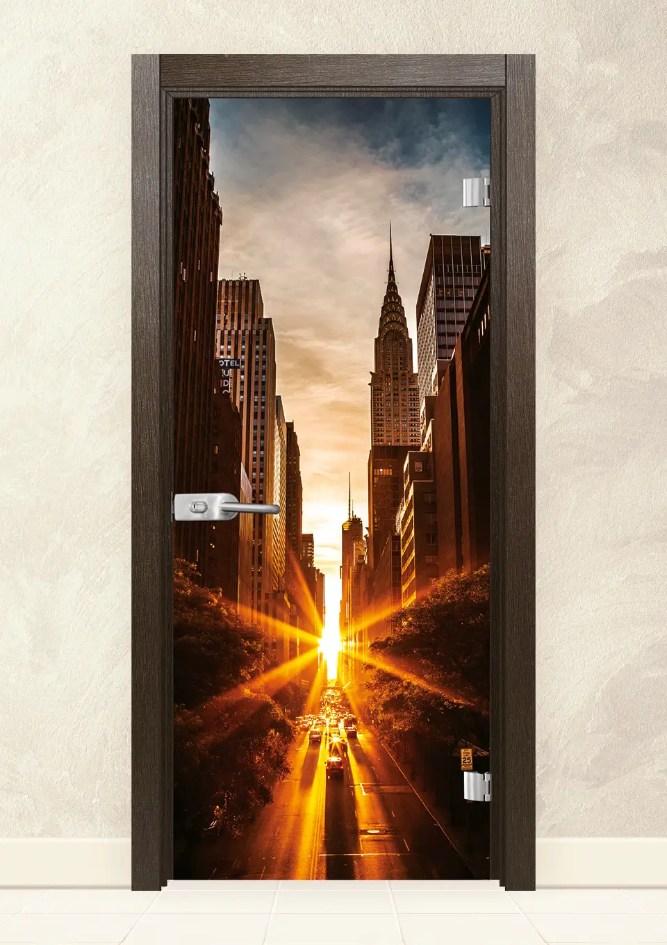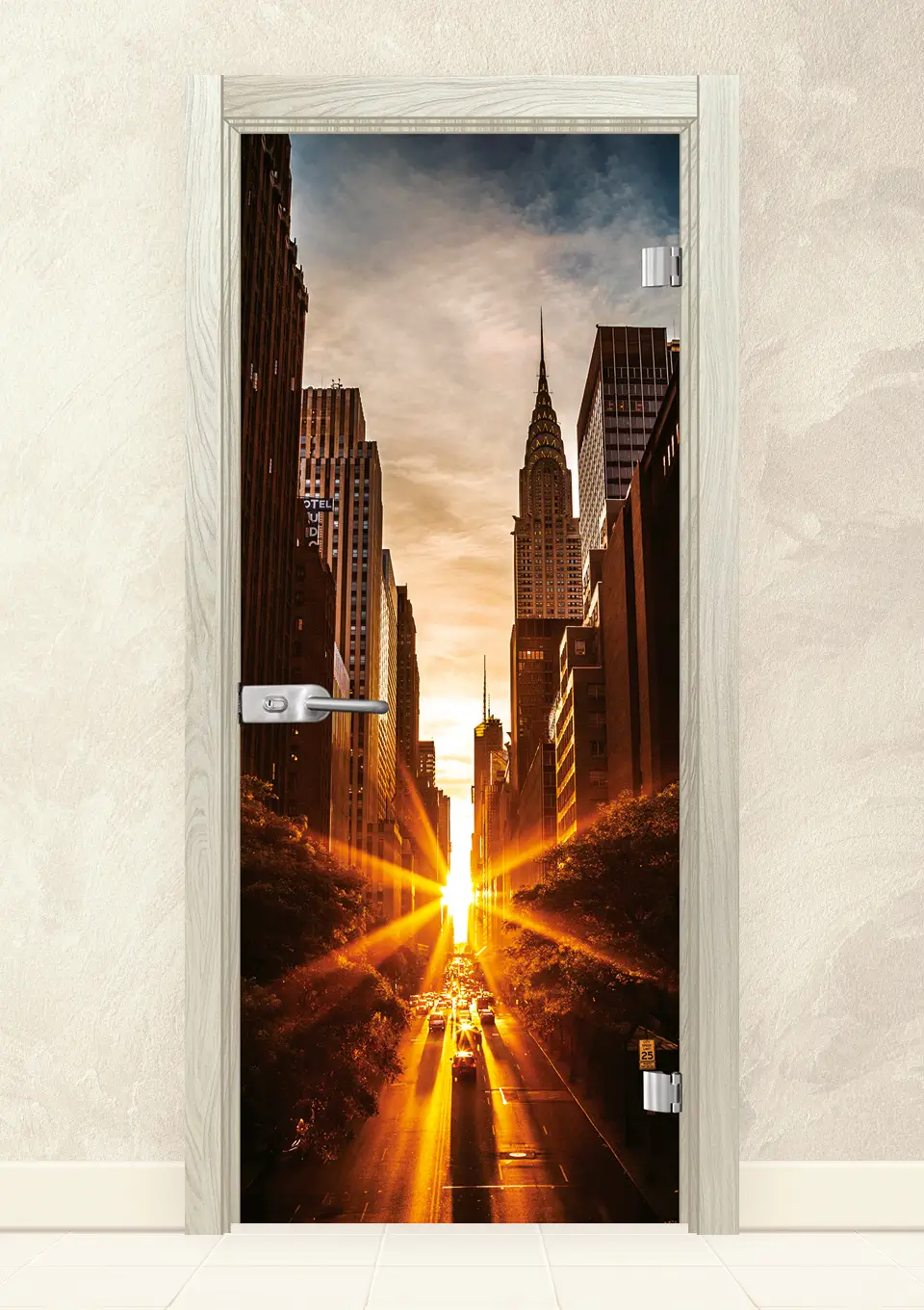 Стъклена врата, изработена от 8мм закалено стъкло с принт. Закаляването е процес, при който стъклото е подложено на специална обработка, осигуряваща му повишена здравина при удар и резки спадове на температурите. При счупване, то се пръска на малки парченца без остри ръбове. При серия Print се слепват две 4 мм  стъкла, чрез специален термичен процес, като между тях се поставя фолио с принт. Принтът може да бъде едностранен или двустранен.
