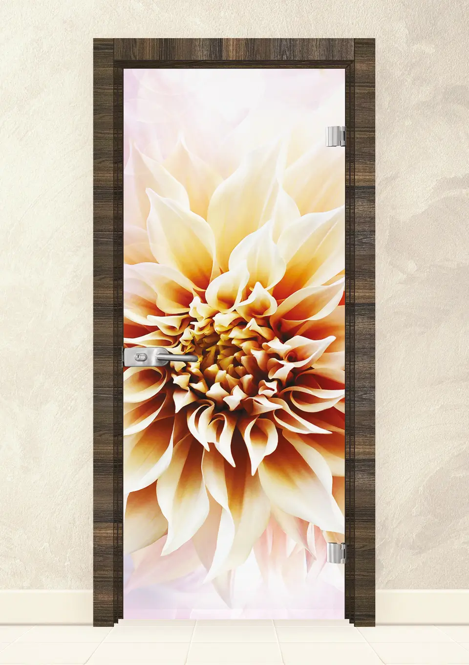 Стъклена врата, изработена от 8мм закалено стъкло с принт. Закаляването е процес, при който стъклото е подложено на специална обработка, осигуряваща му повишена здравина при удар и резки спадове на температурите. При счупване, то се пръска на малки парченца без остри ръбове. При серия Print се слепват две 4 мм  стъкла, чрез специален термичен процес, като между тях се поставя фолио с принт. Принтът може да бъде едностранен или двустранен.