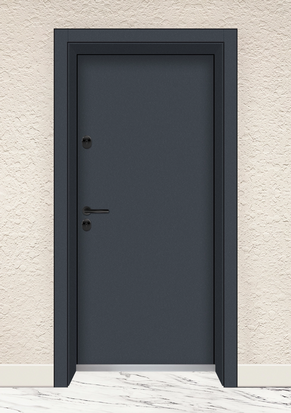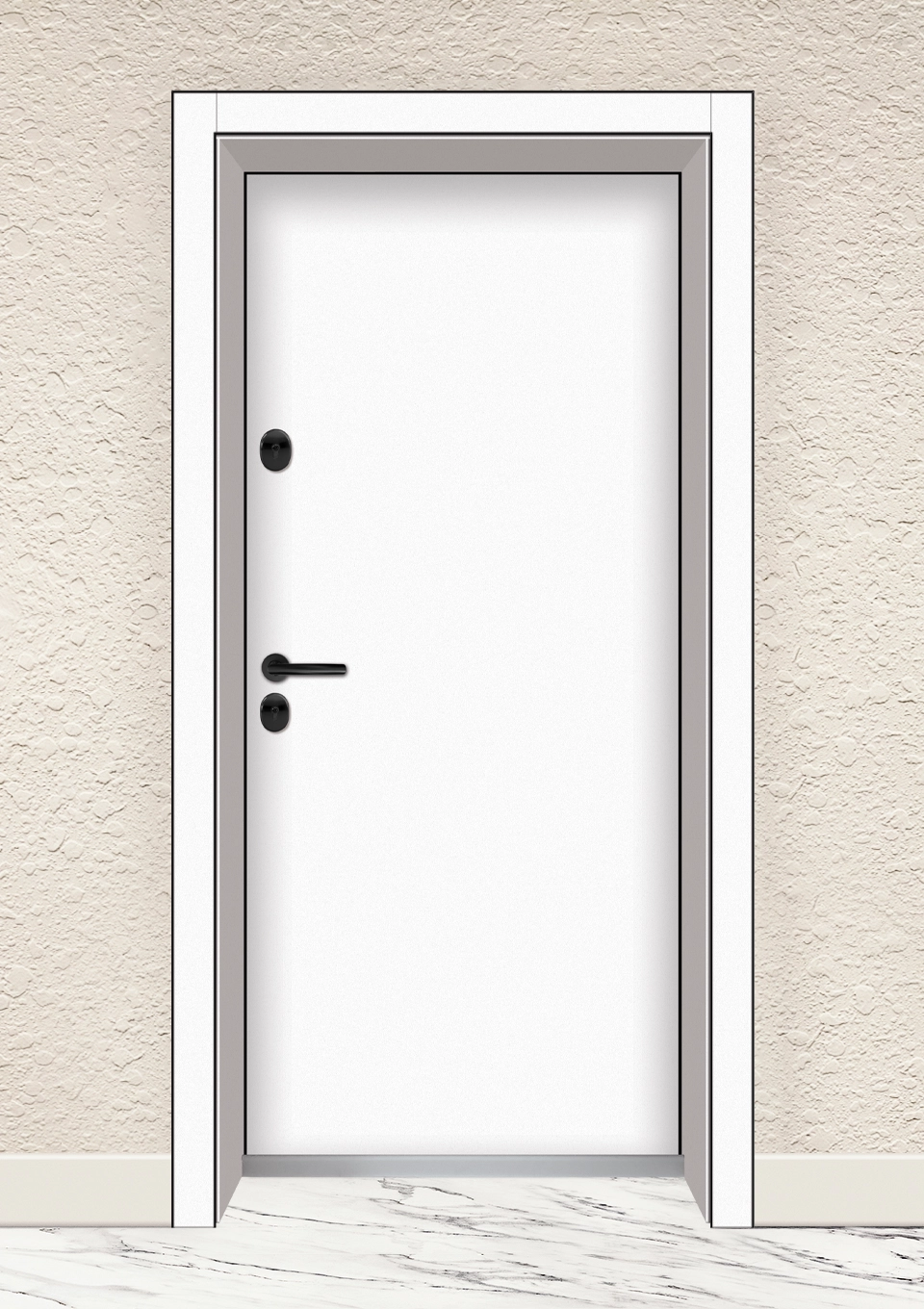 - Первази от композитен материал в цвета на вратата и декоративни завършващи елементи в черен цвят